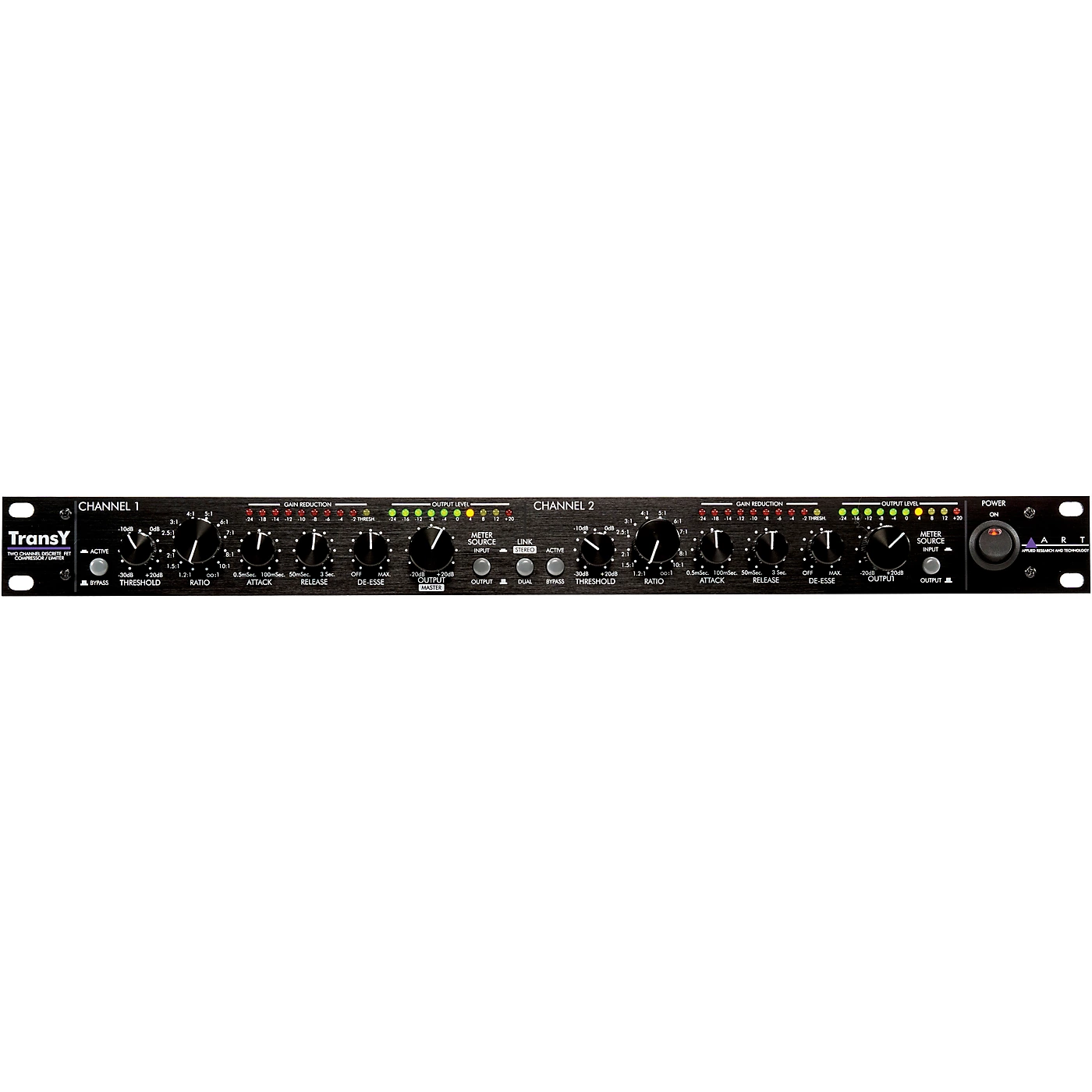 The TransY compressor/limiter features a discrete, low noise transistor audio path using a Field Effect Transistor for level control producing incredible detail. The unique feed-forward detector topology and the servo FET drive circuitry provide a new level of flexibility and tone. The unit can be set to control audio levels from smooth and unobtrusive to full-blown deep sustain.From the Active balanced input to the transformer-coupled output, the TransY abounds with easily adjustable reliable, repeatable functions due to the attention to detail in the design. The TransY adapts to a multitude of applications with its’ +4/-10 level switch. A wide range of adjustments are available through the front panel controls always producing a musical result. Even the universal power supply adapts to line voltages allowing you to tour the world or connect to portable power sources without interruption.Apply the TransY as your secret weapon from playing out live to recording and mastering. The TransY can handle whatever you throw at it producing a professional result. Master your unique sound with the TransY.