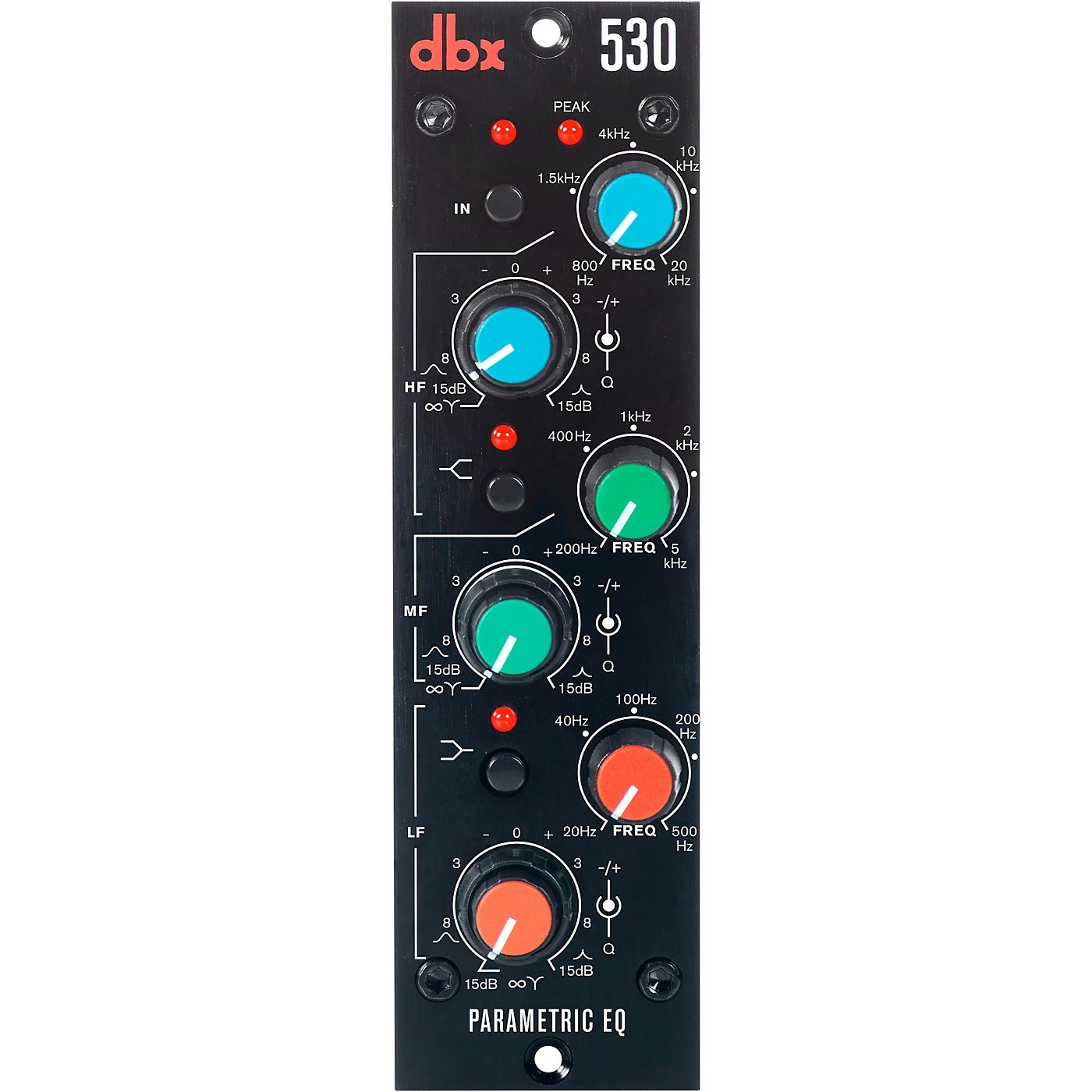 The dbx 530 Parametric EQ offers a unique degree of equalization flexibility in the popular 500 Series format. Based upon the classic dbx 905, the dbx 530 is an uncompromising equalizer offering true, fully parametric operation of all three filter bands. dbx has a much-heralded history with modular processors dating back to the 900 Series, and the dbx 530 continues that tradition. The dbx 530’s overlapping bands each offer control of frequency bandwidth (Q) and up to 15dB of reciprocal cut or boost to provide exact, complimentary filter action for the most demanding of equalization needs. For problem situations requiring the removal of spurious signals, each of the bands can be independently switched into “infinite notch” mode without affecting the operation of others. In situations where a shelving equalizer will produce better results than a peaking one, the 530’s high and low bands can be independently switched from peaking to shelving operation. You can also make instant affected/bypassed comparisons using the 530’s “On” switch.